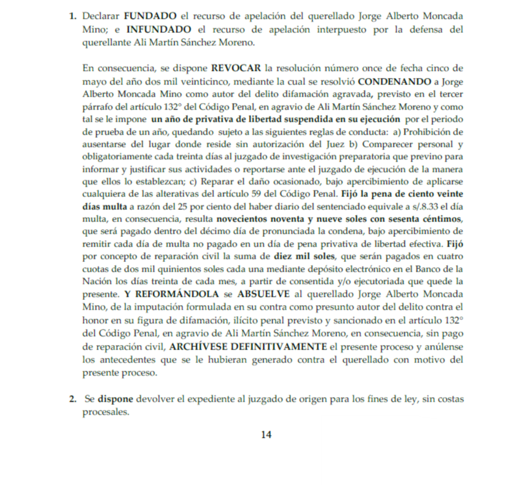 Se abstuvieron: Percy Milton Espinoza Gonzales, Jony Guillermo Piana Ramírez, Andrés Orlando Puell Varas, Jackeline Pamela Alva Carranza, Lucy Karina Villegas Campos y Randy Vegs Diaz.